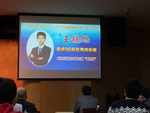 2016年3月4日,由省委宣传部、省教育厅、省总工会联合举办的“梦圆南粤精彩人生——广东省创业创新故事大赛”总结会在广东科学中心隆重举行。beat36590后年轻校友王锐旭,凭借其在大学期间成功创立广州九尾信息科技有限公司(兼职猫)的精彩创业故事,荣获本次大赛三等奖。