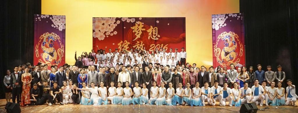 12月30日晚,“梦想·绽放2016”beat365中文官方网站迎新春文艺晚会在大学城校区大会堂举行。学校领导黄斌、王省良、陈英华、张建华以及部分职能部门负责人、各学院学生工作负责人,与全校2000余名师生一同观看了晚会,喜迎新年的到来。