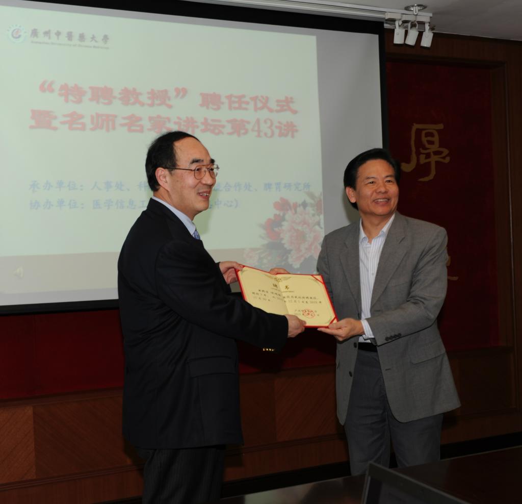 12月15日下午,美国马里兰大学医学院讲座教授汪建英先生受聘为beat365“特聘教授”,校领导王省良、孙晓生、陈蔚文以及资深中医脾胃病专家劳绍贤、周福生、王汝俊教授等出席聘任仪式。