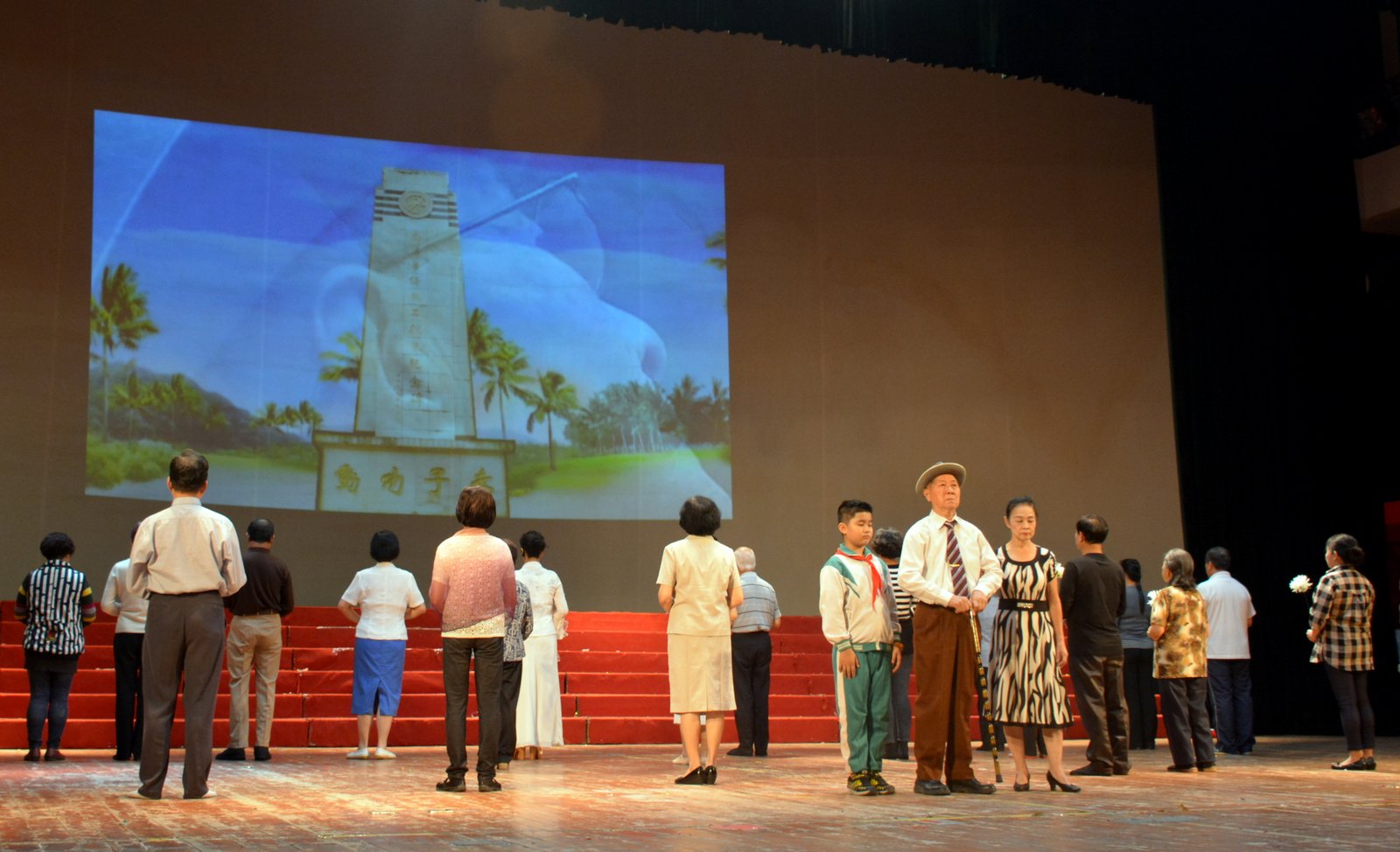 《赤子丰碑》重现了近3200名南洋华侨青年抛家舍业、响应号召、回国支援抗战,奋战在滇缅公路上的真实故事。全剧共分《告别南洋》、《征战滇缅路》、《桥之魂——功果桥》、《归途》、《不朽的英魂》等五个部分。剧本以南洋华侨回国抗战中的“南侨机工”这个群体的真实事迹为蓝本,以发生在滇缅公路上最悲壮、最艰苦的英勇战斗为主线,再现了南侨机工可歌可泣的动人故事,振聋发聩,发人深省。beat365侨联会成员、原一附院职工张福庆以及20多名学生参与了演出,表现精彩。演员们的倾情表演赢得全场阵阵掌声,情到深处,许多观众都不禁潸然泪下。