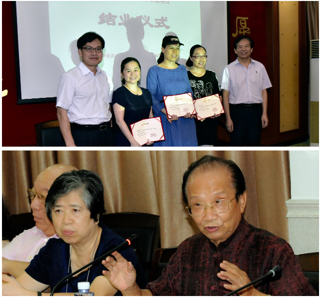 刘忠奇和孙晓生为20位研修学员颁发结业证书,并为3位优秀学员颁发荣誉证书。指导老师陈镜合教授、研修学员魏丹蕾分别代表老师和学员发言。与会指导老师和学员畅谈带教经验或研修感受,并为研修项目的继续完善建言献策。