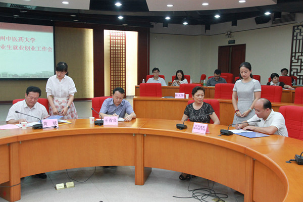 会议传达了全国就业创业工作电视电话会议精神和全省高校毕业生就业创业工作会议精神。公布表彰了2014年毕业生就业工作先进单位和2014年就业工作优秀案例获奖团队,授予中药学院高明副教授"创业指导教师突出贡献奖"。第二临床医学院翟理祥书记、中药学院高明副教授分别作了就业创业工作经验分享。学校主要领导与二级学院代表签订《2015年毕业生就业创业工作目标责任书》。