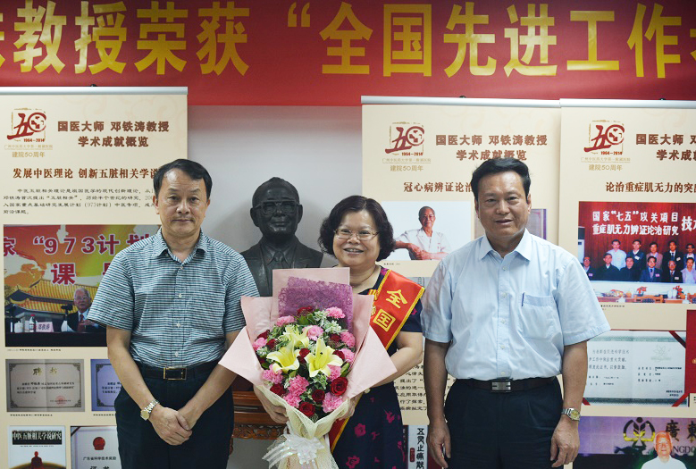 党委书记黄斌指出,林丽珠教授展现了当代医疗专家和教育者的精神风貌,是守护生命和教书育人的楷模。她具有良好的职业道德,拥有精湛的医术,积极探索以中医为主、中西医结合治疗肿瘤的新模式,其主持的肿瘤诊疗方案和临床路径在全国推广应用。她具有丰富的教学经验,并取得可喜的教学成果。她具有较强的科研能力,在全国率先提出肿瘤疗效评价标准。他强调,全校教职工都要学习她良好的思想品德,并以此带动大学校风、教风、师风的建设;学习她爱岗敬业、精益求精的精神;学习她淡泊名利、乐于奉献的境界。大学将继续支持林丽珠教授和肿瘤中心的工作,让中医药在治疗肿瘤、造福人类方面发挥更大的作用。