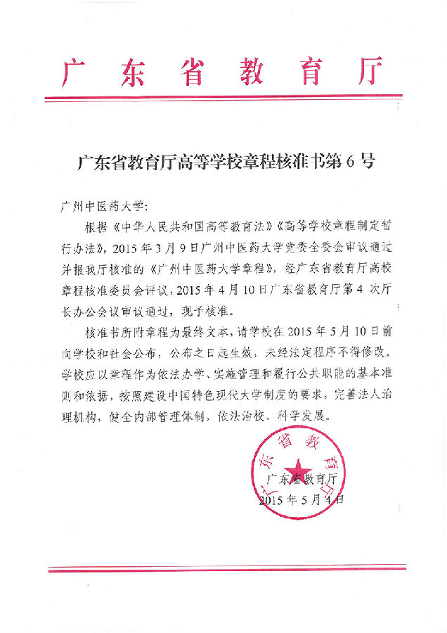 根据《广东省教育厅高等学校章程核准书第6号》,《beat365中文官方网站章程》已经广东省教育厅核准,现予公布。