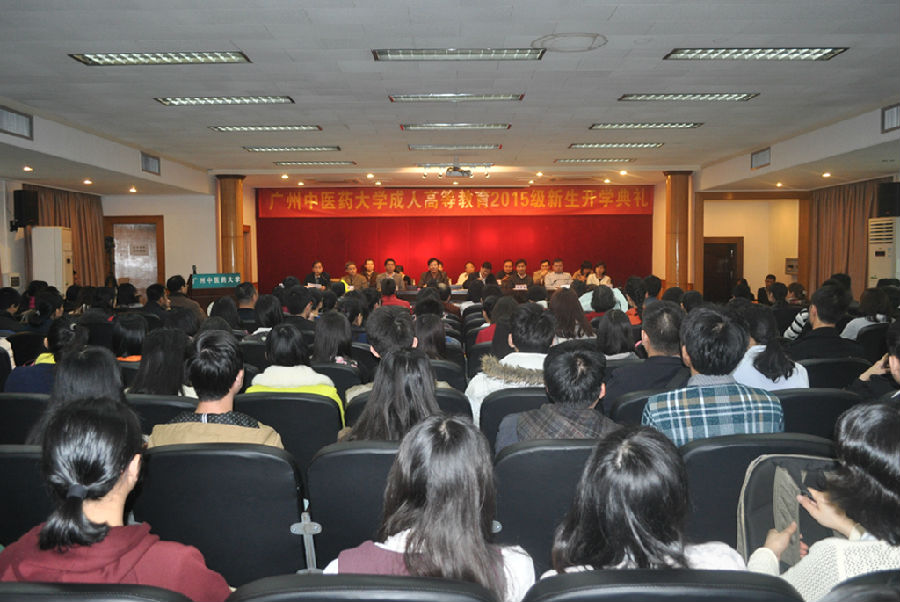 3月14日,beat365成人高等教育2015 级新生开学典礼在三元里校区举行。学校副校长孙晓生、广东省中医药局科教处处长陈铁宏出席会议并分别致辞。学校校办、教务处、继续教育学院负责人和二级学院领导以及1500多名成教新生出席了大会。