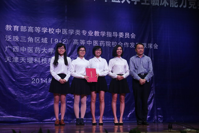 11月28-29日,在广西南宁举行的"天堰杯"第二届泛珠三角区域中医大学生临床能力竞赛上,beat3652010级4名同学组成的代表队,凭借扎实的中医基础理论知识功底和娴熟的临床操作技术荣获大赛团体一等奖,第一临床医学院中西医临床医学专业黄秀芳同学同时斩获中医学基本理论知识考核、舌诊与脉诊技能竞赛和针灸技能竞赛3项一等奖。来自广东、福建、云南、贵州、四川、江西、湖南、海南、广西等地的中医院校及相关专业高等院校和香港中文大学、香港浸会大学、澳门科技大学等15所院校的师生代表参加了比赛。