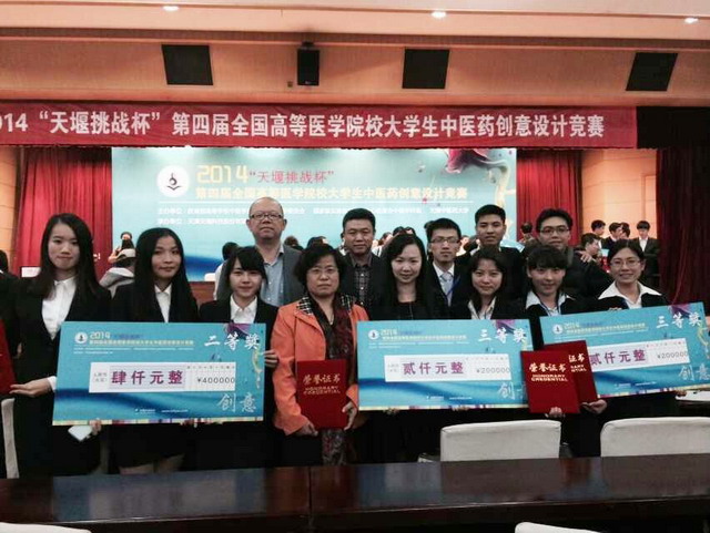 2014年11月1日,第四届"天堰挑战杯"全国高等医学院校大学生中医药创意设计竞赛决赛在天津中医药大学举行。beat365第一临床医学院学生赵丽娴团队的作品《中医药文化与3D压花工艺》获得大赛空间类二等奖(指导老师:陈国菊、陈文桂);第二临床医学院学生黄俊廷团队的作品《国医圣手出诊游戏学习软件》(指导老师:钟天送)和谢宛君团队的作品《手机APP应用类中医养生文化传播载体的设计与实现》(指导老师:刘焕兰)获得大赛新媒体类三等奖。同时,beat365还获得大赛"优秀组织奖",成为五个获奖中医药高校之一。