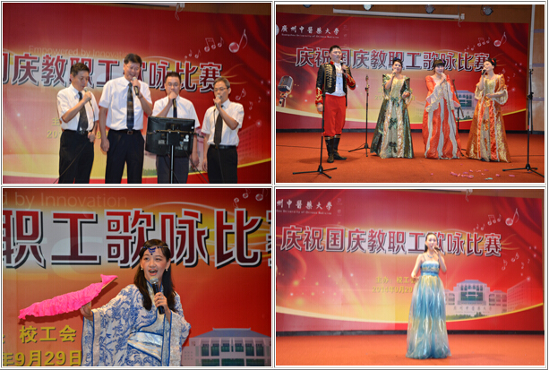 9月29日下午,beat365在教工活动中心举行庆祝国庆教职工歌咏比赛。来自16个二级工会的参赛选手及教职工近200余人欢聚一堂,用歌声庆祝建国65周年。