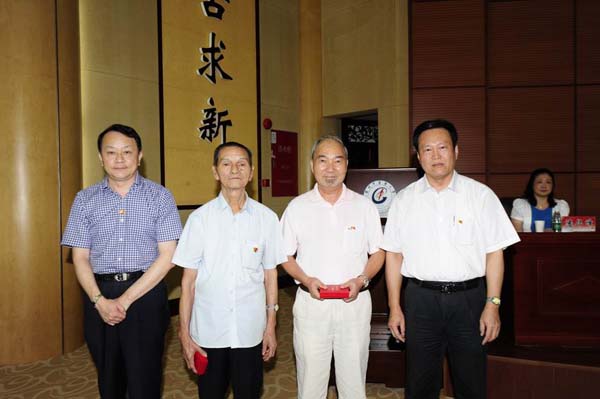 在纪念大会上,学校领导为beat36550年以上党龄的老党员同志颁发了南粤"七一"纪念奖章,表彰这些为党的事业默默无私奉献了50多年的老党员。谢全安、黄关亮同志代表beat365老党员同志领取了奖章。