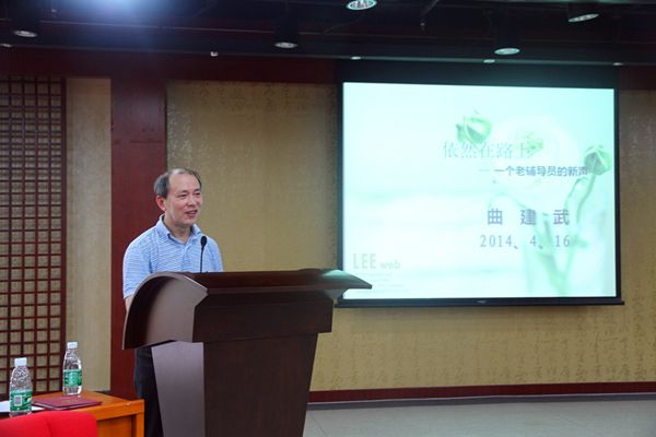 报告结束后,黄斌即兴谈了个人学习体会。他对曲建武教授在辅导员岗位平凡的工作中做出了非凡的成绩表示赞许,希望全体辅导员向曲教授学习,一是学习其坚定的理想信念,拥护党的领导,走中国特色社会主义道路,将学生工作与建设中国特色社会主义伟大目标紧密结合起来;二是学习其爱岗敬业的精神,充满深厚的感情去做好育人工作;三是学习其高超的工作方法和艺术,紧扣时代要求和学生实际不断创新工作方法;四是学习其正确看待个人名利的人生态度,在荣誉面前保持清醒,淡泊名利,坚持崇高的理想追求,无私奉献,辛勤工作。
