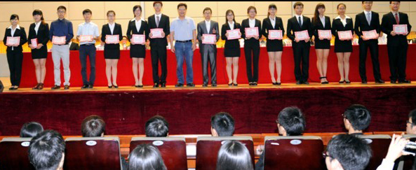 陈英华为第18届学生会委员会中的优秀学生干部颁奖。