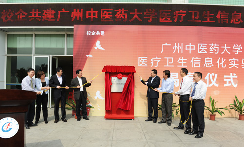 黄斌书记讲话指出医疗卫生信息化实验室的建设是校企合作的新成果,是新形势下推进高等教育科学发展,创新人才培养模式,实现产学研紧密结合,深化教学改革,提高人才培养质量的重要举措,标志着校企合作迈向一个新台阶,推动校企协同创新向更高层次发展。同时要充分发挥学校的优质资源,通过与深圳市永泰中天软件股份有限公司、先特计软件(苏州)有限公司、广州医博信息技术有限公司三家企业的合作,创立高校与企业联合培养人才的新机制,相互学习,相互借鉴,取长补短,充分利用医疗卫生信息化实验室平台,将信息技术与医药相结合,利用信息技术助力传承中医药事业的蓬勃发展,为广东建设中医药强省培养更多优秀人才。
