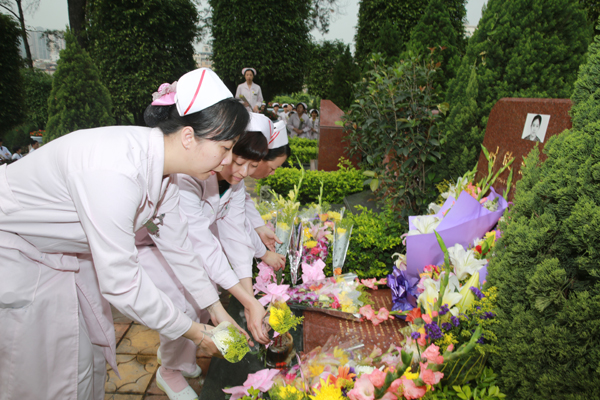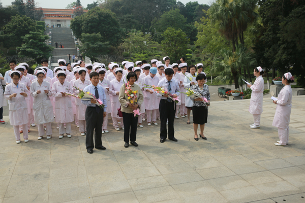 3月25日是"抗非"烈士叶欣逝世10周年纪念日。3月23日,beat365第二附属医院(广东省中医院)近百名医务人员来到银河革命烈士公墓深切缅怀"抗非"英雄叶欣护士长,向烈士敬献鲜花。 叶欣生前是广东省中医院二沙岛分院急诊科护士长,在2003年"抗非"过程中,她不顾个人安慰,冲锋第一线。在护理"非典"病人的过程中,不幸感染"非典",以身殉职,她喊出的"这里危险,让我来!"成为了时代的最强音。她被追授为全国优秀共产党员、革命烈士,荣获南丁格尔奖章、白求恩奖章,被评为感动中国"双百"人物,最近又被评为"感动广州60年最美女性"。