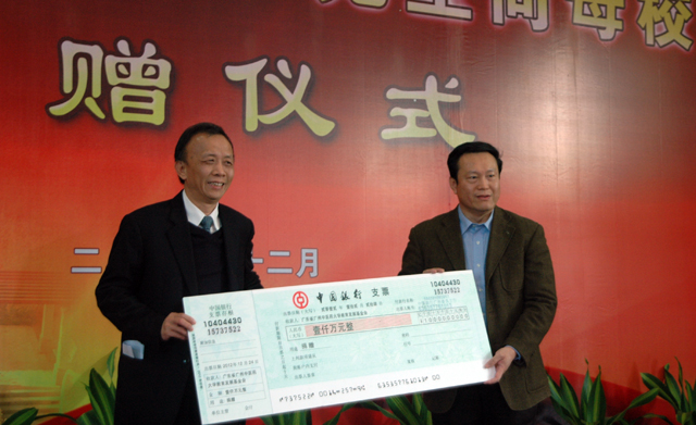 12月24日,beat365在大学城校区举行仪式,接受杰出校友新南方集团有限公司总裁朱拉伊先生向母校教育发展基金捐赠的1千万元款项。校长王省良主持捐款仪式,党委书记黄斌代表学校接受朱拉伊先生的捐款。据悉,此系beat365历史上接受的数额最大的一笔捐款。朱拉伊先生在仪式上发表了主题为"‘我的中医药'与‘中医药的我'"的讲话。曾经受新南方教学奖励基金资助的师生代表及全校2百余人参加仪式。