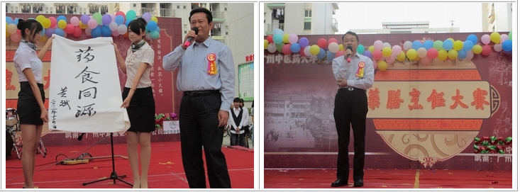 伴随着精彩的醒狮表演,第六届药膳烹饪大赛拉开了帷幕。黄斌书记对本次活动给予了高度关注,执笔提词"药食同源"以示勉励。黄斌书记指出,中医药文化源远流长,经过五千年文明历程,是华夏史诗中的璀璨明珠,对于中华民族的繁荣昌盛有着巨大的贡献。药膳发源于传统的中医食疗文化,是将药材与食材合理配伍烹饪而成的美食,"寓医于食",药借食力,食助药威,相得益彰,既具有较高的营养价值,又可保健强身。黄书记勉励同学们在活动中领悟精髓,激发灵感,为今后弘扬中医药文化积蓄素材和力量。