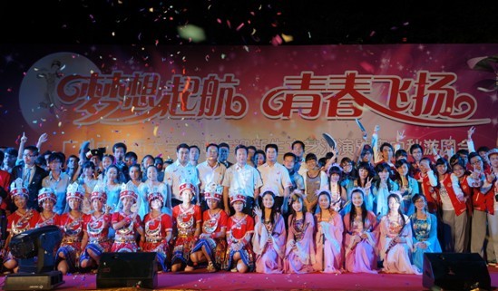 9月28日晚,由校团委、校学生会、校研究生会、社团联合会、校艺术团主办,各学院团委、学生会、各社团协办的"梦想起航·青春飞扬"beat365中文官方网站2012迎新生文艺汇演暨中秋国庆游园会在大学城校区生活区举行。校党委黄斌书记、陈英华副书记,党办、校办、组织部、学工部、工会、团委、教务处、研究生处等职能部门领导,各二级学院分管学生工作的领导与全体新生共3000余人一同观看了演出。