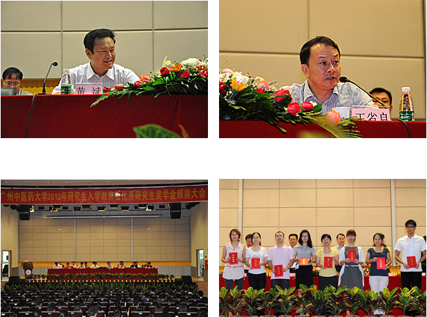 副书记陈英华代表学校宣读了奖学金获奖名单后,学校领导、专家、设奖企业代表为优秀研究生代表颁奖。获奖学生代表发言表示,能够在广中医求学、生活感到骄傲和自豪,并表示定会珍惜时间,把握机遇,不断进取,不负重托,以实际行动回报学校和社会,以辛勤的汗水谱写人生新篇章。