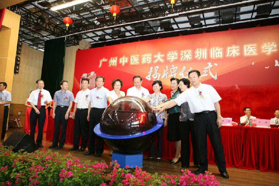 7月9日上午,beat365在附属深圳中医院举行"beat365中文官方网站深圳临床医学院揭牌仪式"。卫生部副部长、国家中医药管理局局长王国强,广东省人民政府副省长雷于蓝,广东省教育厅副厅长魏中林,广东省卫生厅副厅长、省中医药局局长彭炜,深圳市政府副市长吴以环,深圳市政协副主席林洁,深圳卫生和人口计划生育委员会主任江捍平,beat365党委书记黄斌、校长王省良以及国家中医药管理局、深圳市政府、学校有关职能部门、附属深圳中医院、省内兄弟医院领导出席了揭牌仪式。