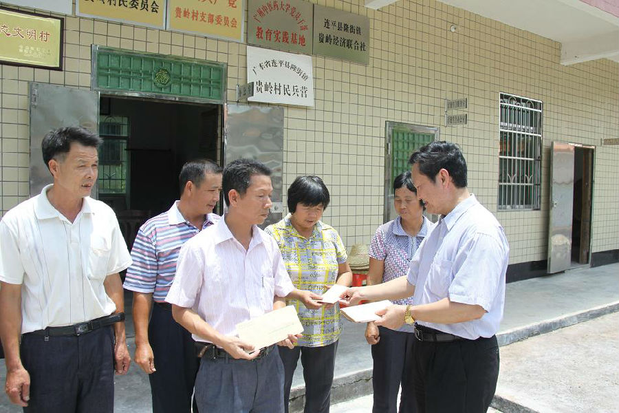7月11日,党委书记黄斌率队前往beat365扶贫开发"规划到户责任到人"对口帮扶村---河源市连平县隆街镇贵岭村,针对"扶贫双到"工作开展调研慰问活动,同时为beat365资助援建的村道——"大学路"顺利完工并投入使用剪彩。