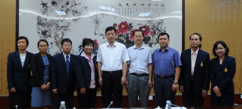 2012年7月9日上午,由副校长ChayapornSiriwattana女士率领的泰国皇太后大学代表团一行7人到beat365参观访问,刘晟副校长与代表团举行了座谈。