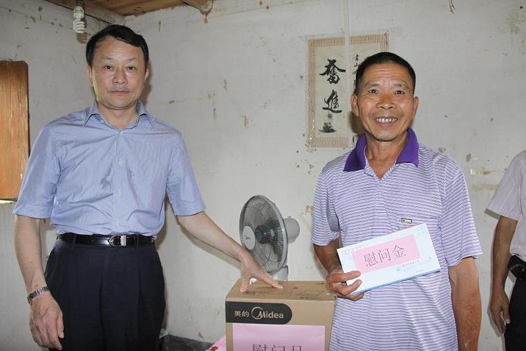 6月12日,校长王省良、副校长许能贵率领直属校办(三元里校区综合办)党支部、外事处(国际学院)党支部、党委组织部、财务处等部门同志合共十余人赴beat365扶贫开发"规划到户责任到人"对口帮扶点——贵岭村调研,指导检查扶贫开发"双到"工作,并对贵岭村的困难党员干部群众进行走访慰问。