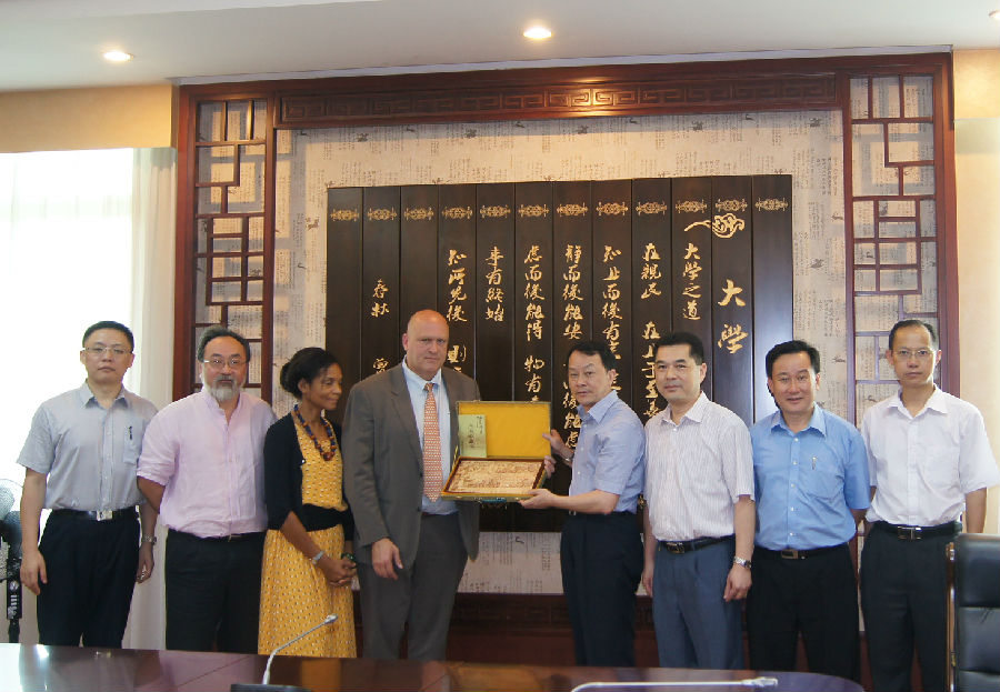 5月17日上午,王省良校长在大学城校区会见了到访的法国发展研究院健康部主任Herve TISSOT DUPONT 、亚太区代表Regine LEFAIT-ROBIN博士和艾滋病研究中国区主任LU WEI教授。会见中,王省良校长介绍了beat365的基本情况,对双方艾滋病合作研究和博士研究生联合培养工作表示了肯定,并向法国客人赠送了礼物。会见结束后,法国客人参观了广东中医药博物馆和二附院(广东省中医院)大学城医院。