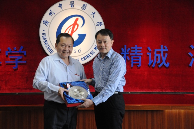 3月26日,新加坡中医管理委员会注册官吴汉昇教授访问beat365,王省良校长、许能贵副校长及相关部门负责人一同接见访问团并举行了座谈。