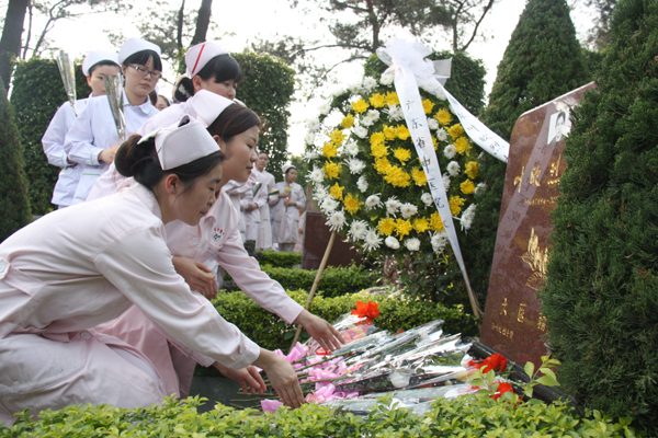 3月25日是"抗非"烈士叶欣逝世9周年纪念日。3月19日,beat365第二附属医院(广东省中医院)、南方医院、第39届南丁格尔奖章获得者钟华荪和叶欣家属等两百余人前往银河公墓叶欣烈士的墓前进行了祭扫活动,向烈士敬献鲜花,深情缅怀英烈。