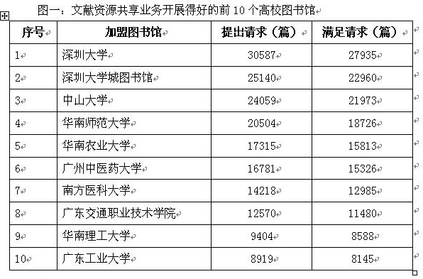 beat365图书馆自2009年10月开通"珠江三角洲数字图书馆联盟"联合目录平台的使用以来,不断地通过网络、课堂、讲座及海报等各种途径在全校范围内推广使用该平台,通过一系列的推广与宣传活动,2011年我馆的文献资源共享业务取得了显著的成效。如图一及表一所示,从2011年1月1日至12月22日,beat365用户通过该平台共提出文献传递请求16781篇,其中满足请求15326篇,文献满足率达91.33%,使用量在全省参与该业务的143个图书馆中排名第7,其中高校图书馆中排名第6。利用"珠江三角洲数字图书馆联盟"联合目录平台开展馆际互借和文献传递,大部分可在2小时内得到答复,满足率高、响应速度快,使得联盟平台目前已成为我馆补充馆藏资源、满足用户文献信息需求的主要途径之一。