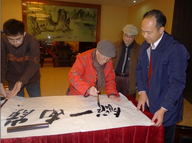 这天一早,经历了人生第九个龙年的国医大师邓铁涛终身教授冒着寒风冷雨,偕同家人来到博物馆。他在观看了液浸中药标本墙及犀牛标本后,详细地了解了博物馆在正规化、专业化建设方面的工作,对博物馆重新布展后的展览环境的优化、馆藏品种的增加、服务社会及弘扬中医药文化所作的工作及申报国家二级博物馆的举措大加赞赏,欣然题写了他的龙年开笔之作"岭南一馆",对博物馆的厚爱和期望跃然纸上。