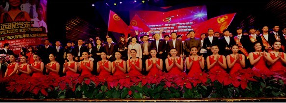 黄斌书记在致辞中指出,为贯彻落实党的十七届六中全会精神,进一步发挥高校大学文化的育人、塑人功能,以先进文化凝聚和引领广大青年学子投入幸福广东和文化强省建设,团省委、省教育厅、省文化厅、省学联联合举办"永远跟党走"第六届广东大学生校园文化艺术节,beat365中文官方网站能够承办闭幕式暨校园年度人物颁奖典礼,倍感荣幸!beat365高度重视大学思想文化建设,在文化育人方面取得了明显的成效:一是弘扬"崇德远志、和衷有容、汲古求新、笃学精业"的广中医精神,为建设高水平中医药大学提供精神动力;二是打造具有中医药特色的志愿文化,为大学生了解社会、融入社会、服务社会提供广阔平台;三是推广校园品牌活动,极大地丰富了广大学生课余生活;四是加强校园文化建设,营造良好的育人氛围;五是坚持以师生为本,着力建设幸福校园。当今中国处在一个改革创新的伟大时代。黄书记说,当代大学生必将谱写壮丽的青春乐章,留下闪光的奋斗足迹,也必将涌现出更多为国家、为民族而拼搏奉献的优秀典型。黄书记最后强调,我们要以科学发展观为指导,勇于开拓创新,为加快转型升级、建设幸福广东做出新的更大的贡献,以优异成绩迎接广东省第十一次党代会和党的十八大胜利召开。