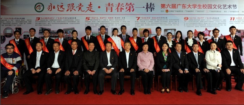 12月30日下午,"永远跟党走"第六届广东大学生校园文化艺术节闭幕式暨"感动南粤校园"广东大学生年度人物颁奖典礼在beat365大学城校区大会堂举行。"感动南粤校园"广东大学生年度人物主任评委、省人大王宁生副主任,省人民政府雷于蓝副省长,团省委、教育厅、文化厅相关领导,以及来自全省各高校1000多名师生代表出席了本次活动。beat365党委黄斌书记出席活动并致欢迎辞,王省良校长、陈英华副书记,及相关党政职能部门领导、二级学院领导参加了本次活动。