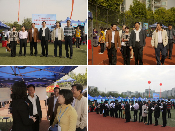 12月6日,广东省2012届高校毕业生就业供需见面活动(医药类专场)在beat365大学城校区举行。近200家省内外医药卫生系统的企事业单位和卫生行政部门前来参会,提供就业岗位共6200多个,岗位数比去年增加25%。来自全国医药卫生类院校约2万名应届本、专科及硕、博士毕业生参加了本场招聘会。广东省教育厅副巡视员、党组成员王玉学,省高校毕业生就业指导中心主任黄兆团,副调研员谢向军,学校领导黄斌、陈英华亲临现场指导工作。