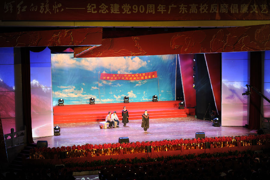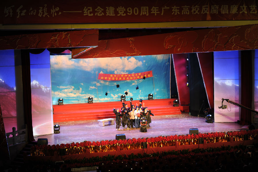 近日,由广东省委教育工委、省教育纪工委主办的"鲜红的旗帜——纪念建党90周年广东高校反腐倡廉文艺汇演"在广州中山纪念堂举行,省委常委、常务副省长肖志恒,省委常委、省纪委书记黄先耀出席晚会现场,学校党委孙晓生副书记及各党政职能部门领导也一同观看了晚会。beat365艺术团小品节目《支医西部》参加演出,并荣获"2011年广东高校反腐倡廉文艺节目评选活动一等奖"。
