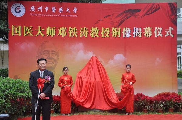 党委书记黄斌在揭幕仪式上致辞。他介绍了邓老一生在医德医术、教学科研、文化传承等方面所取得的杰出成就,并表示beat365建校55年历程离不开一代又一代广中医人尤其是老中医专家不懈的努力。黄斌书记指出,在校园内矗立邓老铜像,象征着beat365广大师生员工要效法以邓老为代表的中医药专家致力于救死扶伤、振兴中医药的宏伟志向,以他们为楷模,继承和发扬他们的学术思想和教育思想,奋力开创beat365科学发展的新局面。