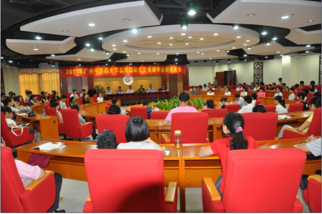 10月13日,由荔博园医药公司资助达100万元的"第五届荔博园研究生奖学金"颁奖大会在大学城校区举行。国家中医药管理局机关服务局孙涛局长、北京荔博园医药研究所黄银发总经理亲临beat365参加颁奖大会。党委书记黄斌、校长徐志伟出席大会,校长办公室、研究生院与各二级学院主管领导、管理干部、获奖学生等120人参加了颁奖大会。