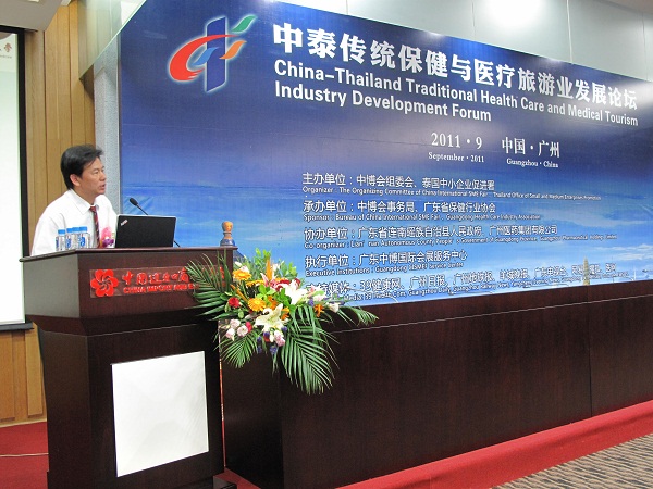 中泰传统保健与医疗旅游业发展论坛由广东保健行业协会、中国国际中小企业博览会组委会及泰国中小企业促进署共同主办,在健康产业有较大的影响力。本次论坛以传统保健和医疗旅游业为主题,主要探讨中泰两国在传统保健、传统医药、理疗按摩、医疗旅游等方面的合作,分享交流和借鉴两国的经验做法以期在健康、旅游方面能深度合作和共同发展。