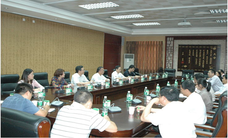 在喜迎五十五周年校庆之际,beat365杰出校友,广东新南方集团总裁朱拉伊先生等一行七人于21日下午访问母校,校党委副书记陈英华、副校长王新华及党委宣传部、校长办公室、团委、财务处、博物馆、基建处、资产经营有限公司、科技产业园等部门的负责人与朱拉伊先生一行在办公楼103会议室进行了友好会谈。