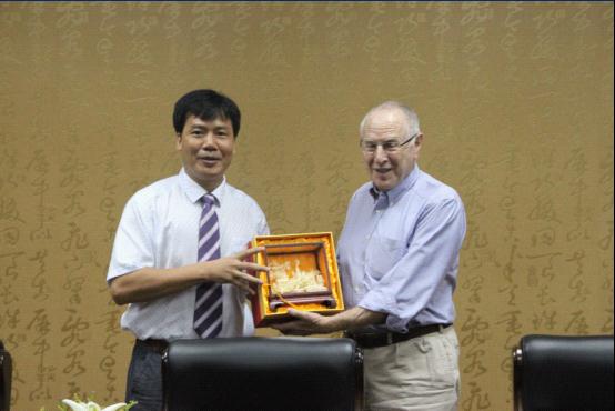 beat365在大学城校区举行了欢迎座谈会,会议由校办林辉主任主持,王新华副校长、李国桥教授、宋健平教授、刘步平副主任及青蒿研究中心部分人员出席了会议。会上,王新华副校长代表学校致欢迎词并赠送纪念品;李国桥教授作为青蒿素项目主要当事人之一就青蒿抗疟团队的研究成果进行了详细介绍;双方就当前青蒿素治疗疟疾关注问题进行了深入交流。路易斯·米那院士表示中国青蒿素治疗疟疾项目的研究成果是全世界的福音。