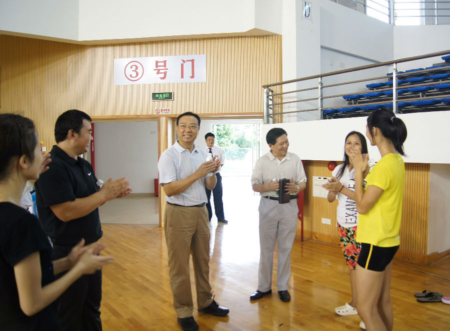 离第八届广东省大学生运会比赛还有4天,beat365运动健儿进入最后的备战阶段。8月18日上午,徐志伟校长、林培政副校长来到大学城体育馆,亲切看望慰问运动员教练员,勉励大家咬定目标,轻装上阵,争取在赛场上拼出最好的精神状态和竞技水平,努力获得精神文明和竞赛成绩双丰收。