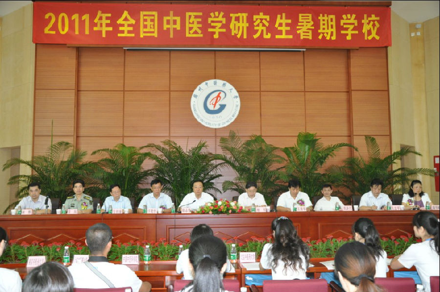 8月26日上午,由教育部和国家自然科学基金委员批准和资助,beat365承办的2011年全国中医学研究生暑期学校开学典礼在学校大学城校区举行。广东省学位委员会办公室杨军主任、校长徐志伟教授、副校长王新华教授、许能贵教授、省内外知名中医药专家以及学校相关职能部门、研究生院和各二级单位领导出席了典礼。来自全国21所医药高等院校相关学科的260余名学员参加了开学典礼。