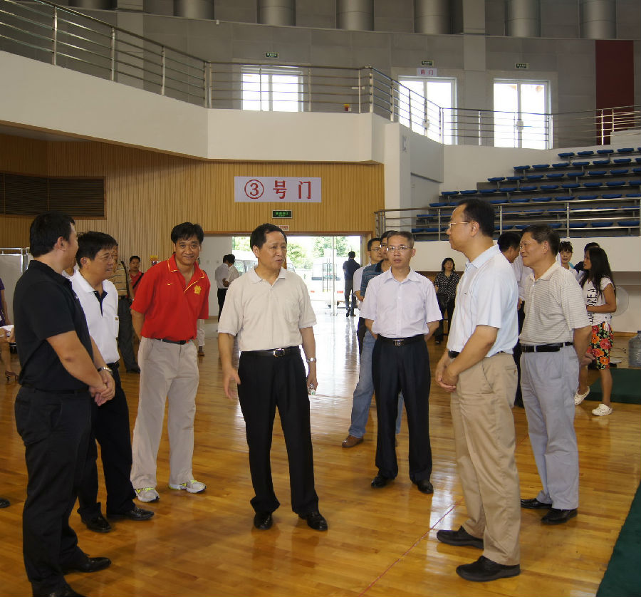8月18日上午,省教育厅厅长罗伟其一行来到beat365,视察第八届广东省大运会武术比赛场地筹备工作情况。学校徐志伟校长、林培政副校长、校长办公室林辉主任和体育健康学院宋述财书记、李兆伟副院长等陪同视察。
