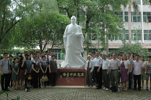 6月13日上午,三元里校区医圣张仲景雕像落成典礼举行。国医大师邓铁涛教授、校长徐志伟、台湾张仲景文教基金会张吴兰英、张书陆先生、张宏运博士出席了落成仪式。 校长徐志伟在致辞中,向文教基金会创会董事长张步桃教授及家人致谢,感谢他们在学校捐建医圣张仲景雕像。雕像历时一载,终于圆满落成,基座正面是邓老亲笔题写的"医圣张仲景像",雕像及基座浑然一体,凝聚了海峡两岸的医学家对医圣张仲景的敬仰和对beat365师生的期望,成为学校一道亮丽的风景,为校园增添了浓郁的人文气息。 台湾张仲景文教基金会执行长张宏运博士发言说,弘扬仲景医学是其父张步桃教授毕生的心愿和事业,张仲景雕像在岭南中医药的最高殿堂巍然矗立,步桃教授非常欣慰。步桃教授还在学校设立了奖学金,让家境贫寒的学子将更多的精力投入到学习中,投入到中医药事业的发展中。 国医大师邓铁涛、校长徐志伟及台湾嘉宾共同为雕像揭幕,高大的医圣张仲景汉白玉雕像呈现在一众面前,雕像掩映在翠绿丛中,斑驳的光影洒在雕像的裙裾上,医圣慈祥的目光安详地注视着书香的校园,大家情不自禁鼓掌喝彩。参加仪式的还有党委宣传部部长简福爱、校长办公室主任林辉、研究生处处长潘华峰、外事处副处长张壮涛及师生代表。