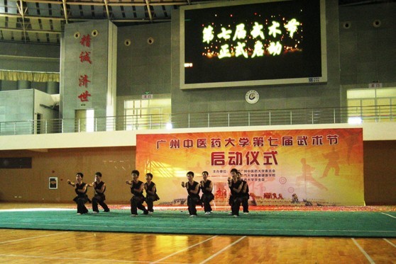 在历届武术节视频回顾、醒狮队精彩演出、各学院运动员代表入场后,现场师生全体起立,共同倒数,领导们一起拉动了第七届武术节的启动杆,顿时,礼炮齐响、烟花绽放,全场欢声雷动。今年的武术节以"弘扬传统文化、传承大学精神"为活动主题,将持续一个月左右,活动内容包括全校武术比赛、拳王电子竞技争霸赛、趣味游园会、历届武术节活动图片展、健身气功普及培训班及义务教拳活动等项目。