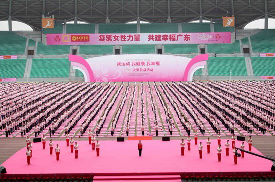 3月6日,由省妇联主办的"我运动•我健康•我幸福"粉红春天大型公益活动在广州大学城中心体育场举行, beat3651000名女学生参加公益活动并参加由其他学校师生共同组成的6000名女师生集体瑜伽表演。粉红春天大型公益活动通过集体瑜伽表演和举行妇女儿童基金捐助仪式,旨在倡导健康生活理念,为广东社会各界关爱女性健康吹响了号角。