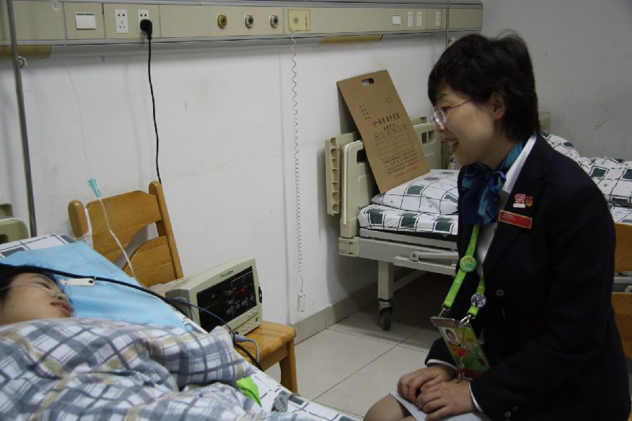 11月19日下午,亚组委志愿者部副部长、团市委副书记童慧到医院亲切看望beat365在铁人三项场馆服务过程中受伤的志愿者、护理学院张利娟同学,向她表示慰问和感谢,并祝愿她早日康复。