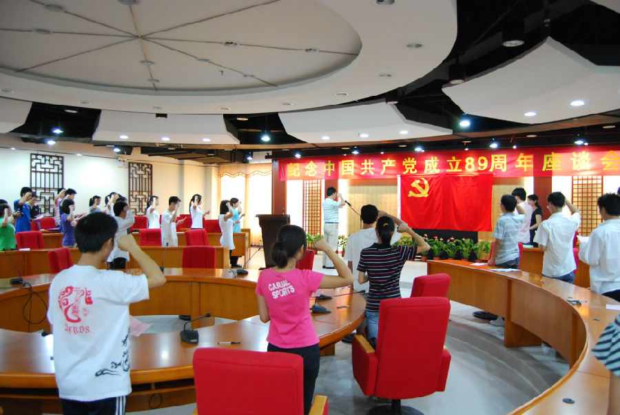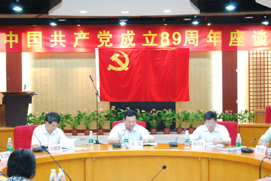 6月30日下午,beat365召开纪念建党八十九周年座谈会暨新党员宣誓大会。大会由学校党委书记黄斌同志主持。