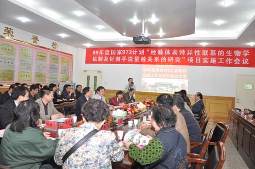 为加强重大项目过程管理,提高项目的实施质量,2010年4月17日,由beat365许能贵教授为首席科学家的国家973计划"经脉体表特异性联系的生物学机制及针刺方法量效关系的研究"项目实施工作会议在安徽省中医院隆重召开,会议由该院杨骏院长主持。国家中医药管理局科技司苏钢强司长、中国工程院石学敏院士、安徽中医学院王键院长、beat365赖新生教授、中国中医科学院针灸所朱兵所长、项目首席科学家许能贵教授等应邀出席会议并讲话,来自项目承担单位的有关负责人、科研骨干及安徽省局领导等共60余人参加会议。