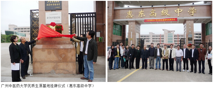 授牌仪式受到东源县、惠东县党委、政府的高度重视,东源县委书记成伟明,县委常委、组织部长何日平、东源县人民政府副县长张新发、县教育局局长朱建利,惠东县人民政府副县长王正印、政协副主席徐妙忠、教育局长李江雁,卫生局长钟铁峰等领导同志参加了优质生源基地授牌仪式。