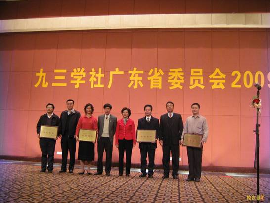 2009年1月3日,九三学社广东省委会在广州东方宾馆召开会议,隆重表彰了在北京奥运会和残奥会、抗震救灾、参政议政和本职岗位上做出贡献的先进集体和个人。